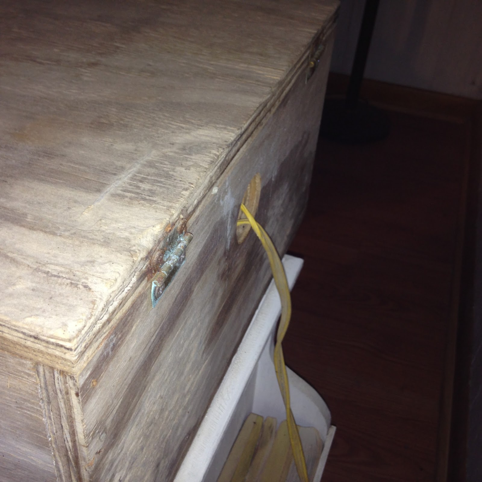 Several years ago, Papa made our small brooder box to hold baby chicks in the first few hours after hatching before being moved to our larger brooder box in the barn. It is a small lidded box that has a screen in the top for ventilation, a porcelain light fixture for a bulb for heat, and room for a small feeder and a small water dish.