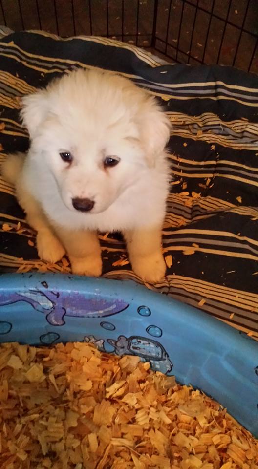 We do have a large coyote population in our area, so we decided that this was the perfect time to add a large guard to our farm as well. Meet Sally, a Great Pyrenees puppy that we purchased from a local family. Sally lives with the goats and will soon be the herd protector. We will have to introduce her to the other animals slowly, one at a time so that she understands that she is to protect them too. They are not a threat to her goats and belong here as well. She is becoming a sweet heart, bouncing over to get her petting while the babies eat. She runs and plays with the goats, to the point that I actually think she may believe she is a goat. 🙂 For now we are the protectors of the goats, and of Miss Sally, but it won’t be long until the farm will be hers and she will keep the predators at bay. I am going to enjoy that day, and look forward to being able to have turkeys once again without loss to predators.